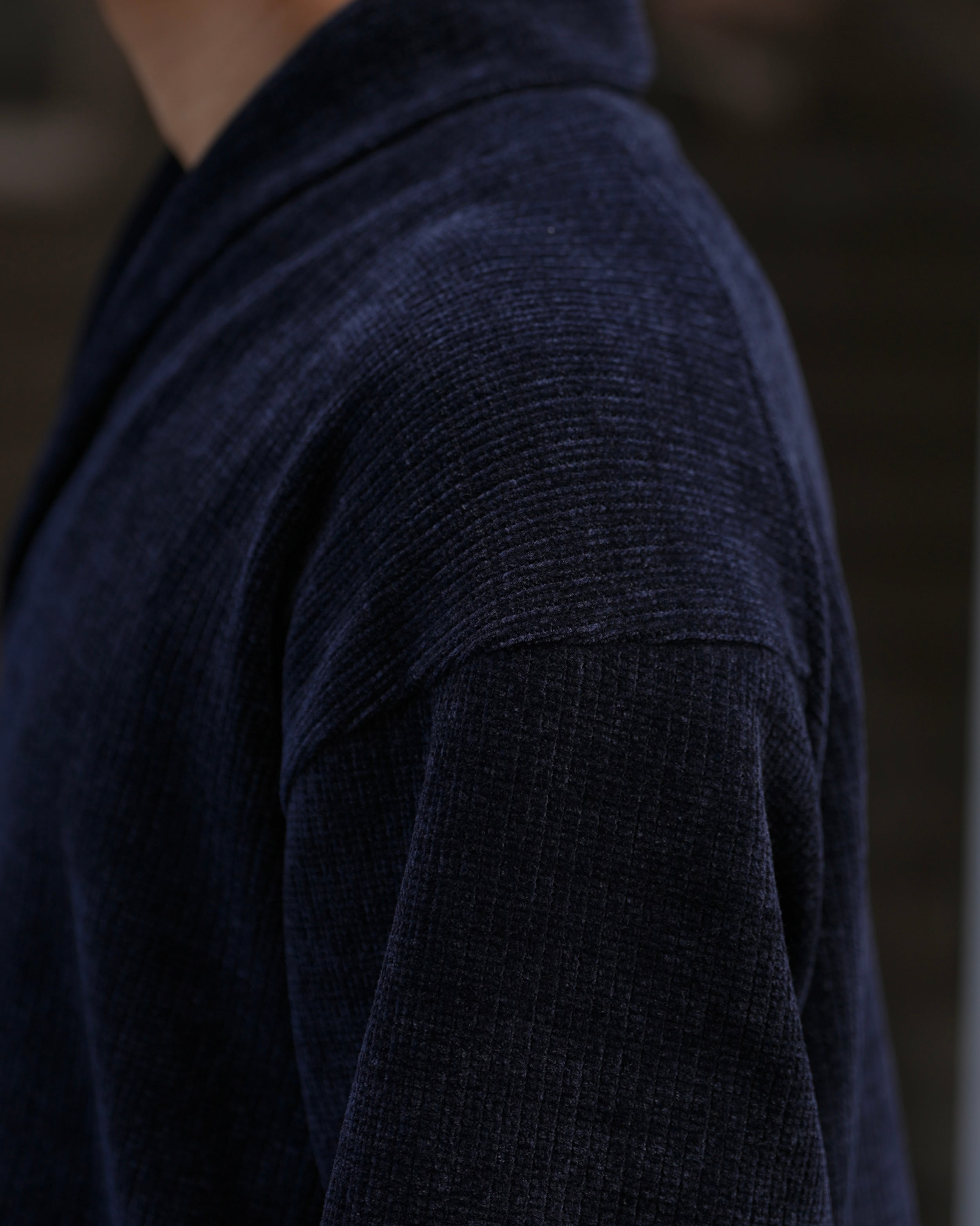 【襟元に立体感を添える大人ショールカラー】