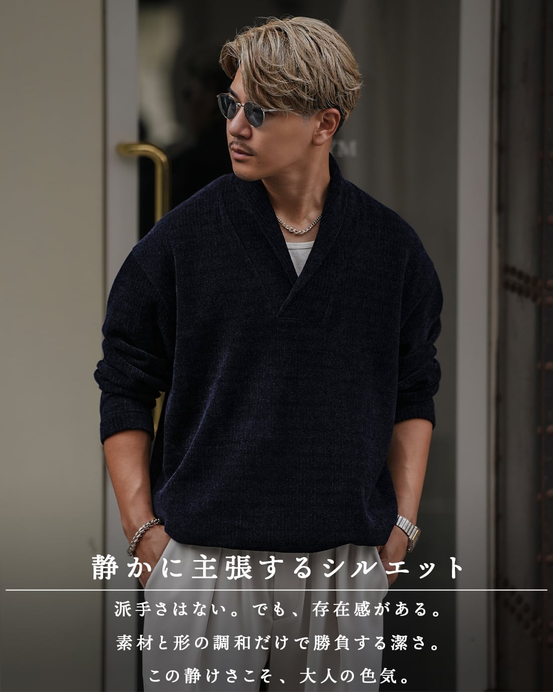 一枚でサマになるのはもちろん、インナー使いでも存在感を放つ。