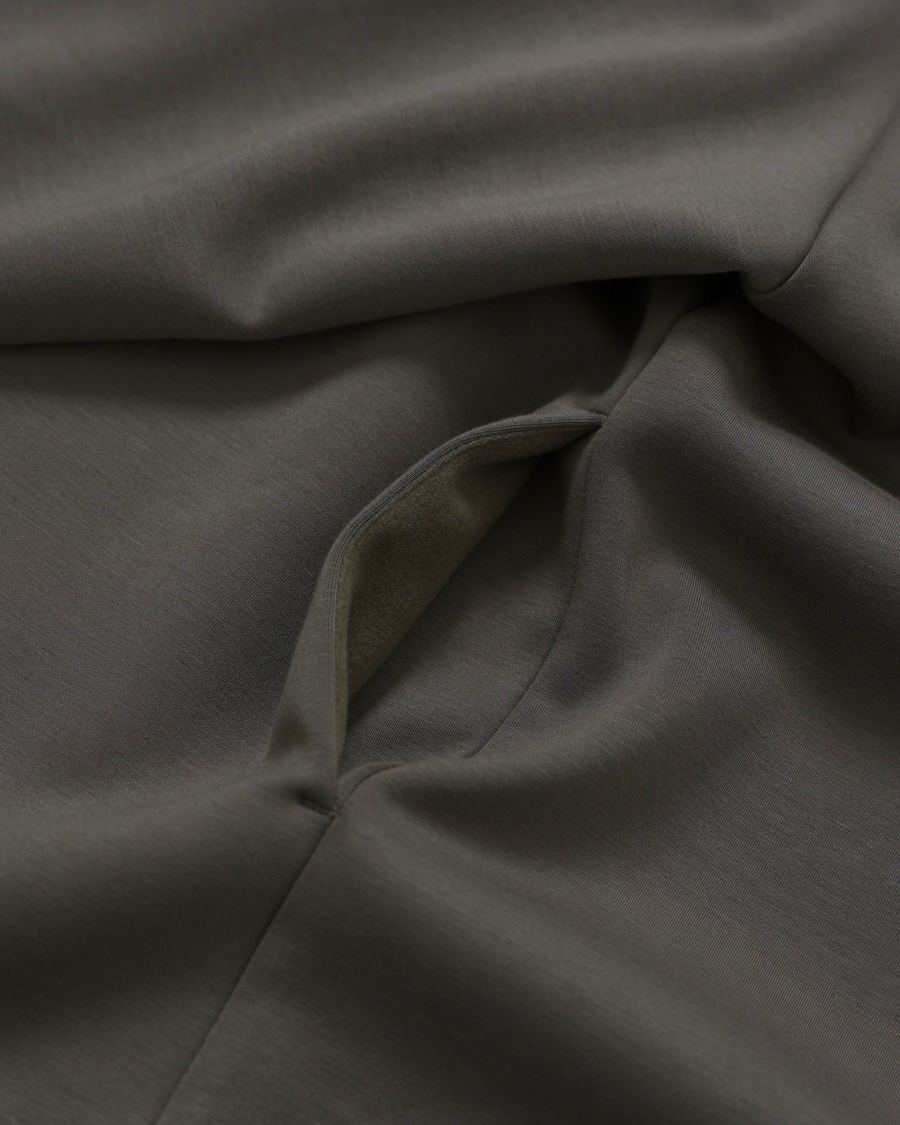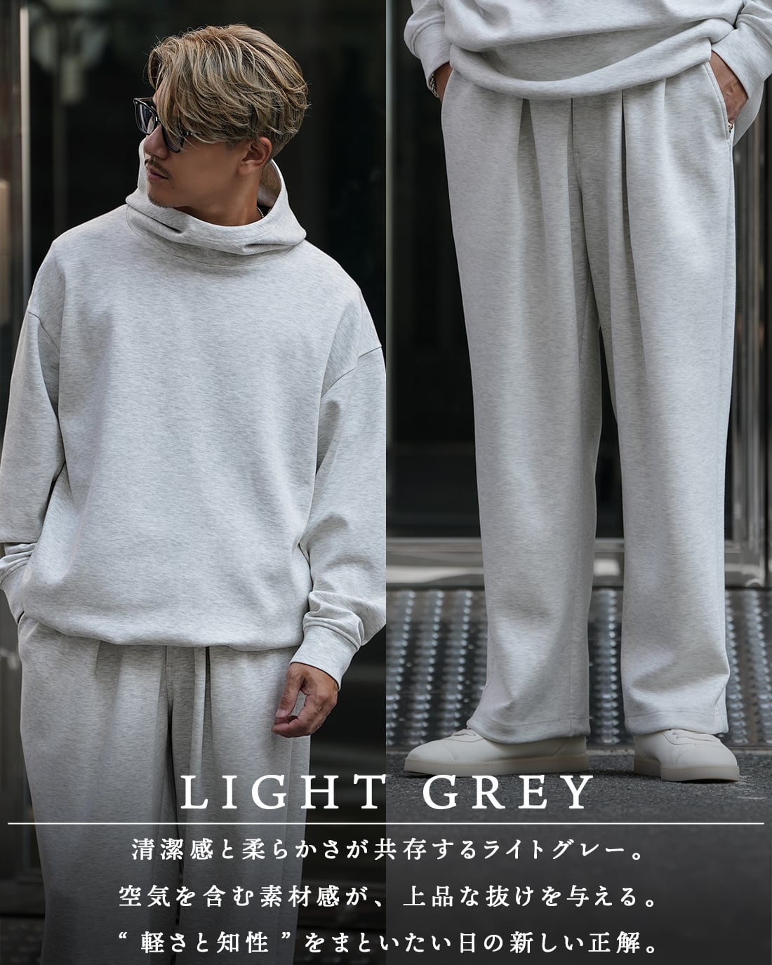 微光沢をまとった表情とハリ艶のある素材感は、スエットではない別格の大人顔を演出。