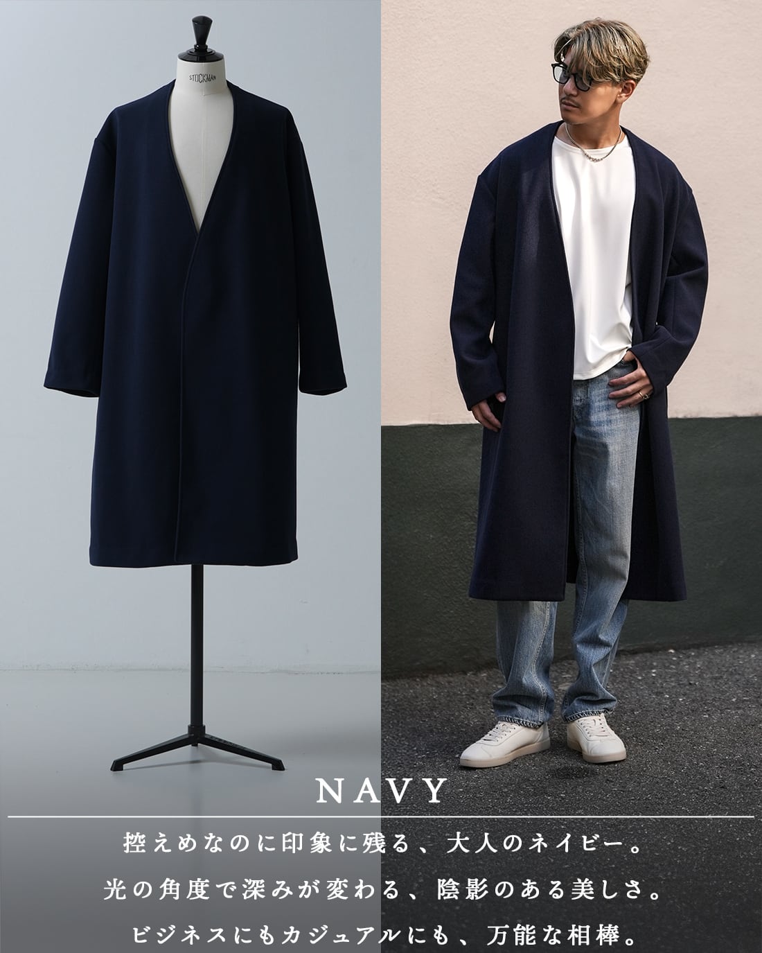 【極上の着心地を追求した最新ノーカラーコート】