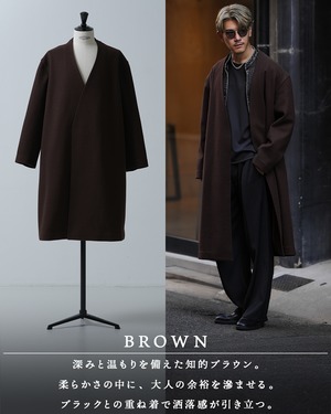 極上の着心地を追求したノーカラーコート。
