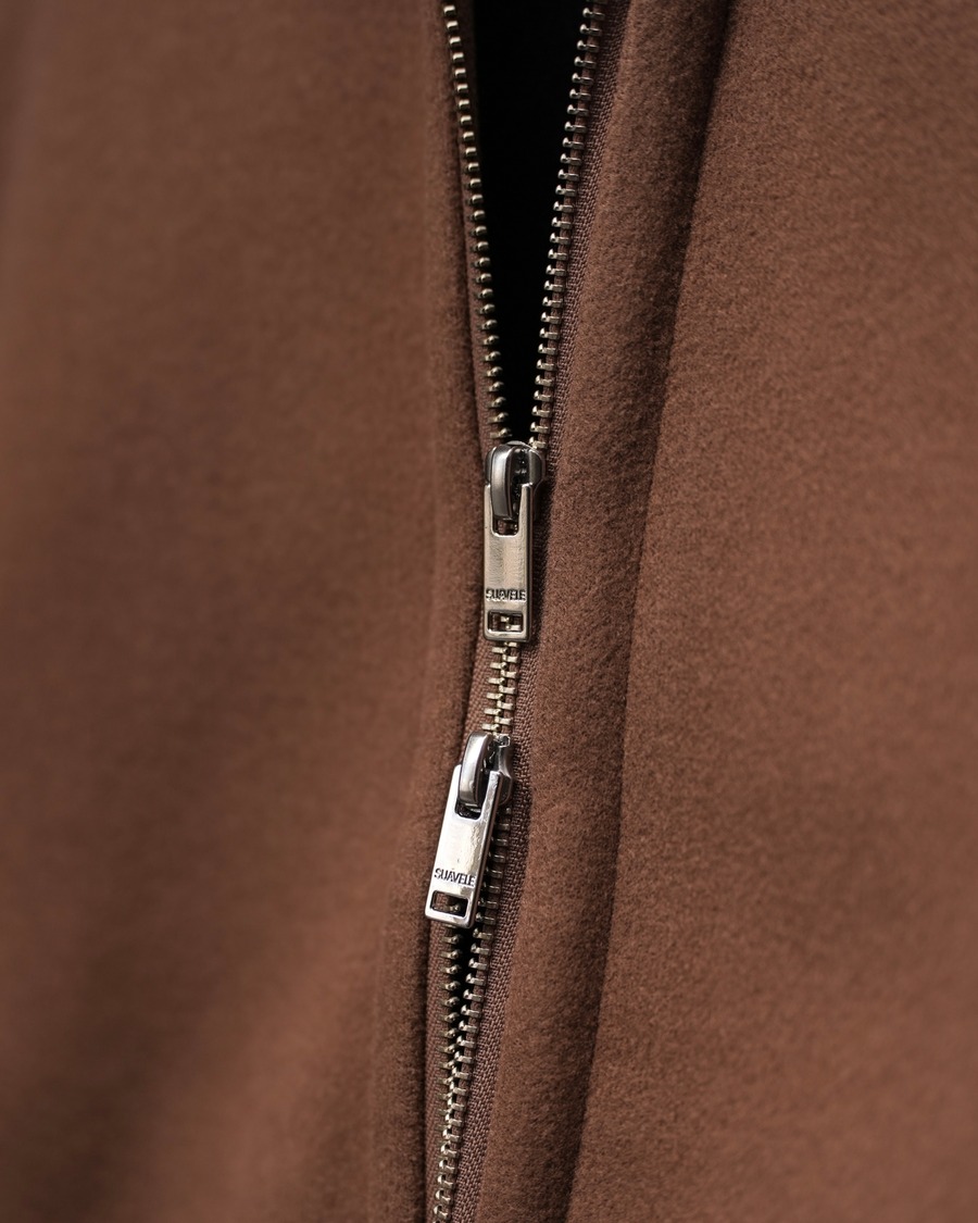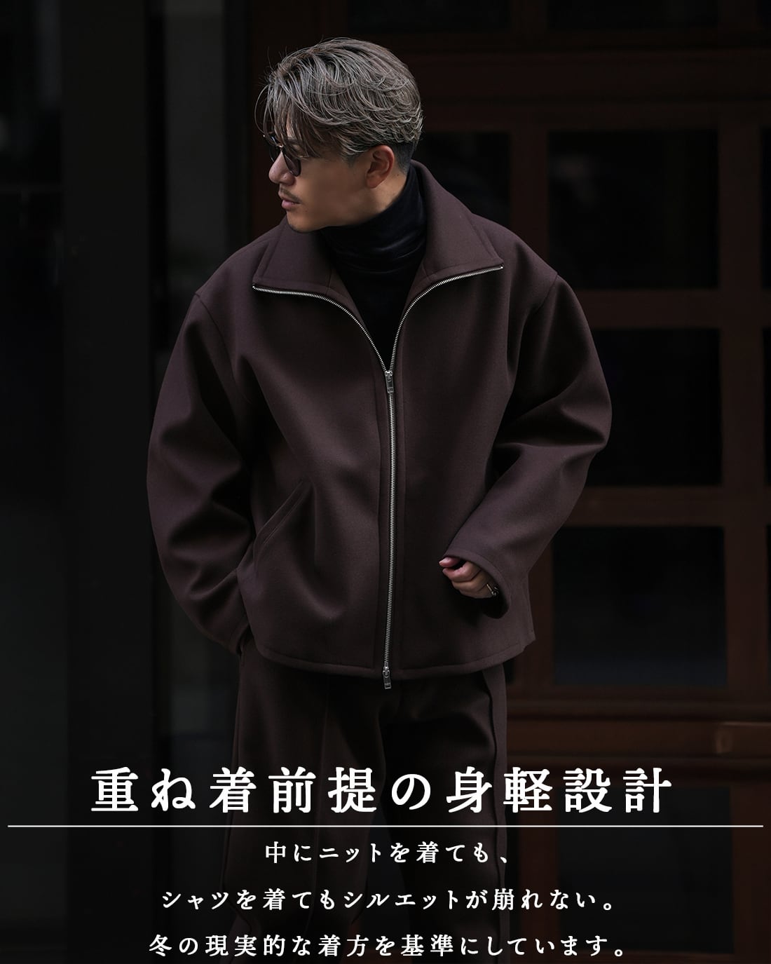 ジップの開閉でシルエットと空気感が劇的に変わり、品のあるミニマルさから抜け感のあるリラックススタイルまで自在に表現できます。