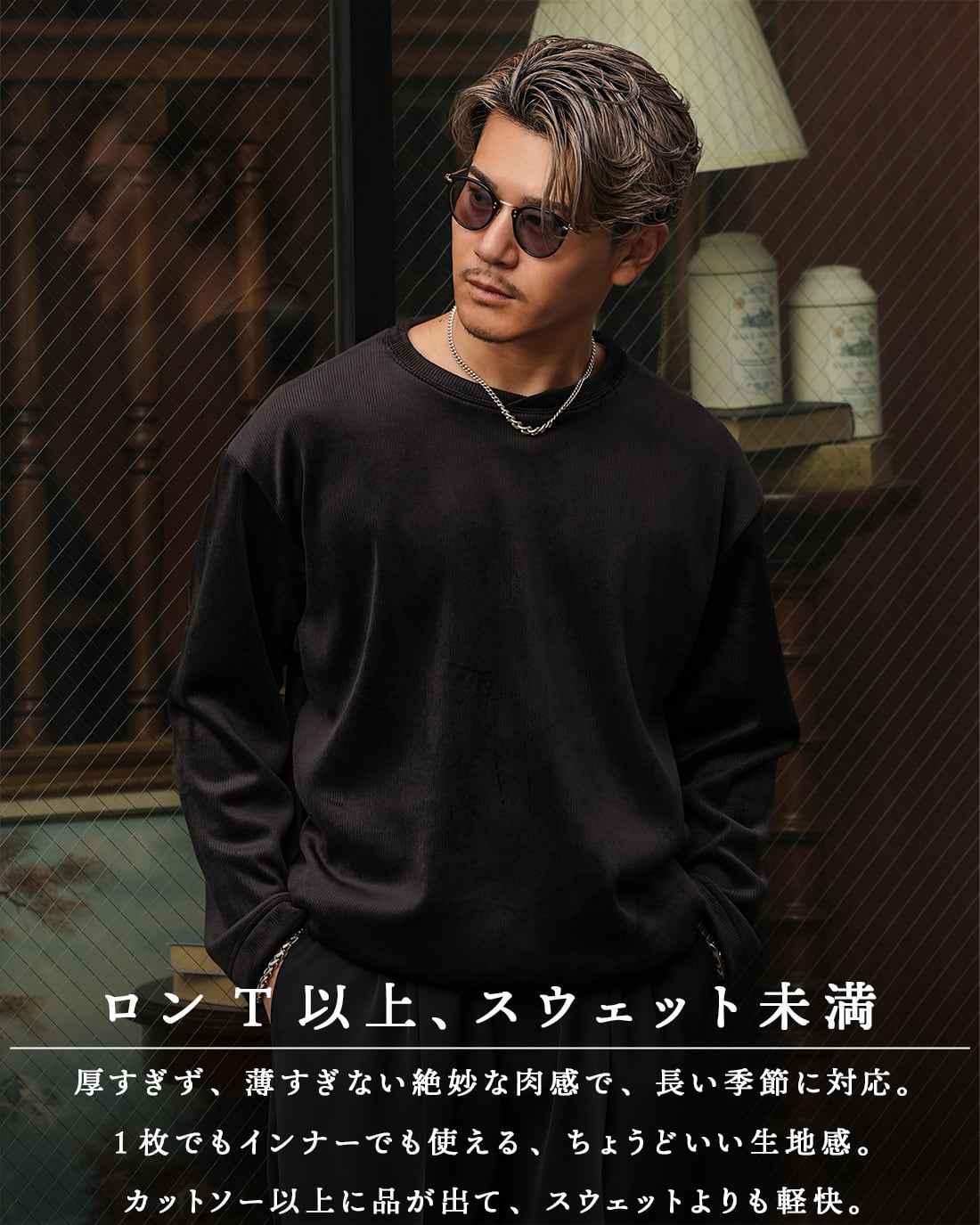 ニット未満、ロンT以上の絶妙な肉感で長く着れる1枚。