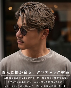【首元に品を宿す、大人のクロスネック設計】