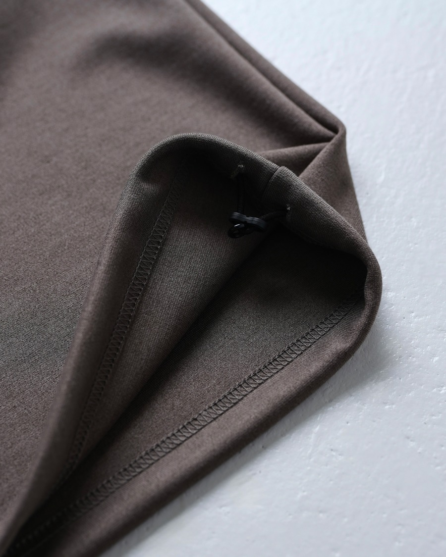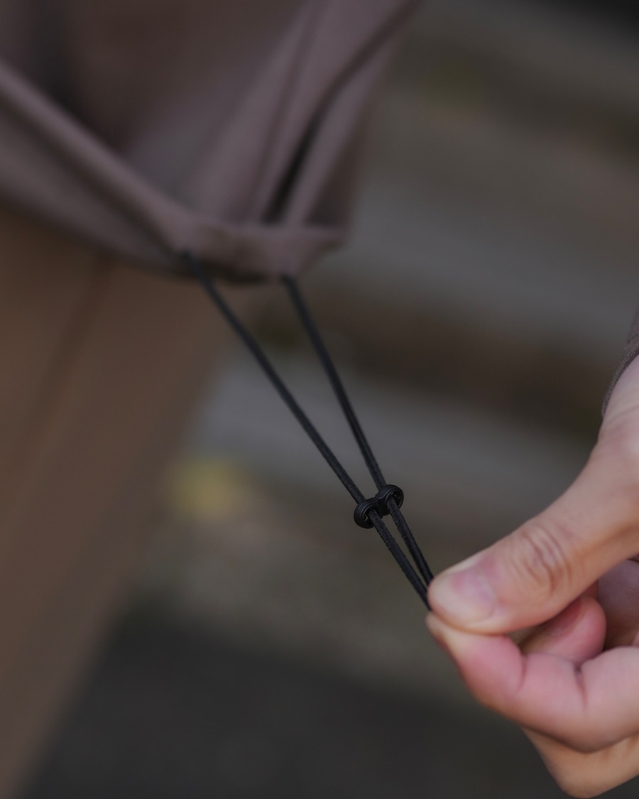 軽やかに見せるバランスを徹底し、裾にはゴムコードを搭載。シルエットは、その日の気分で自在にコントロール可能。