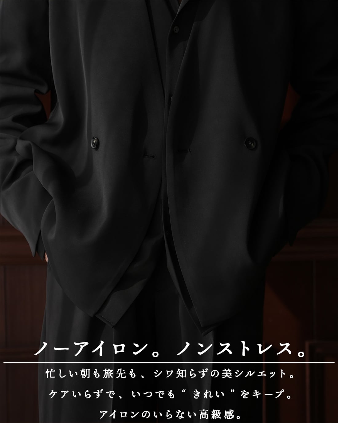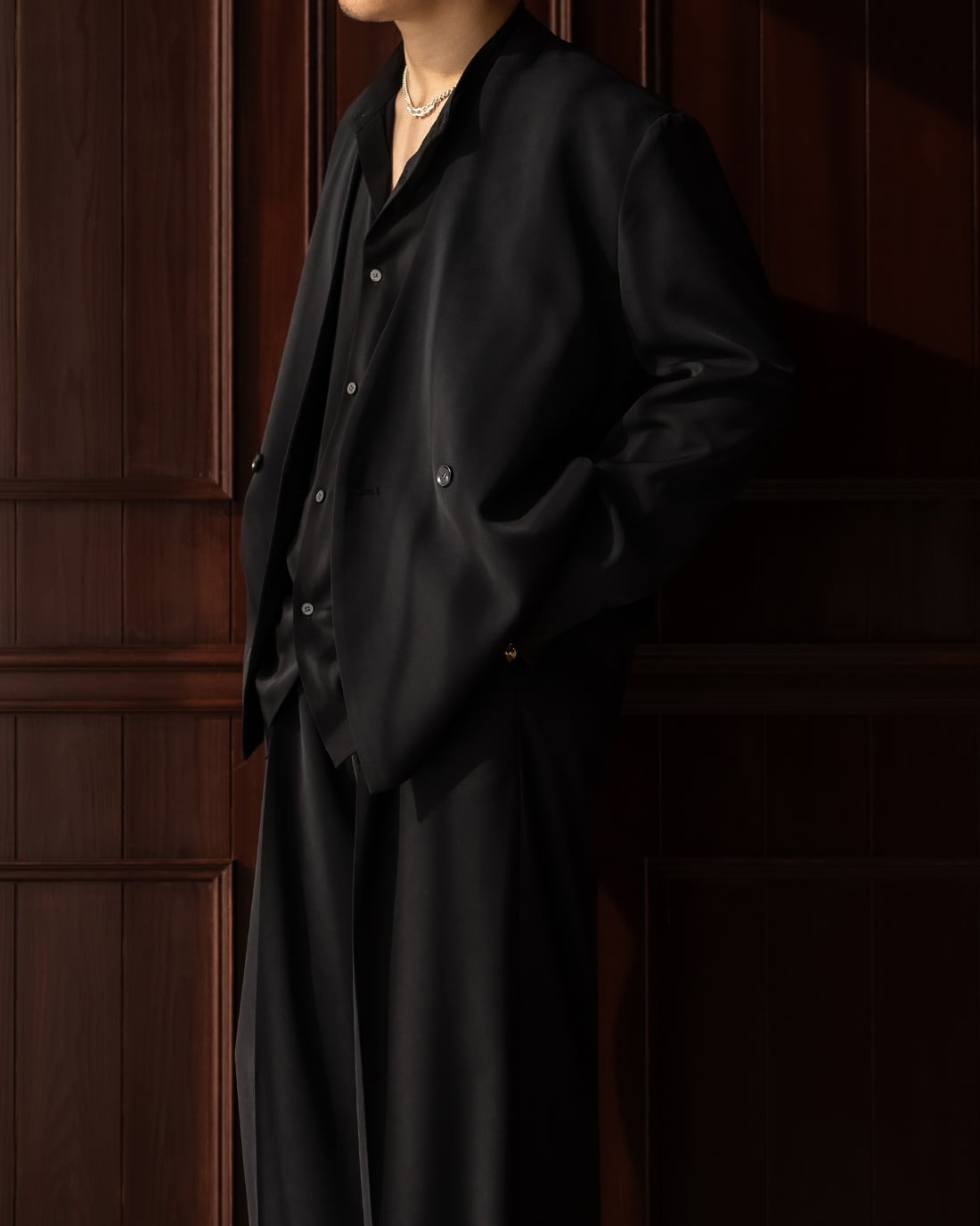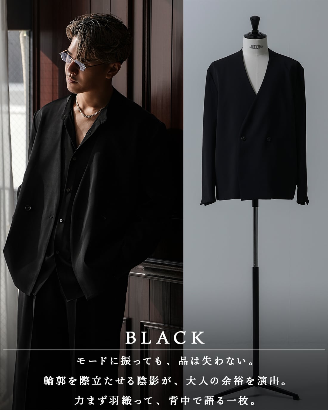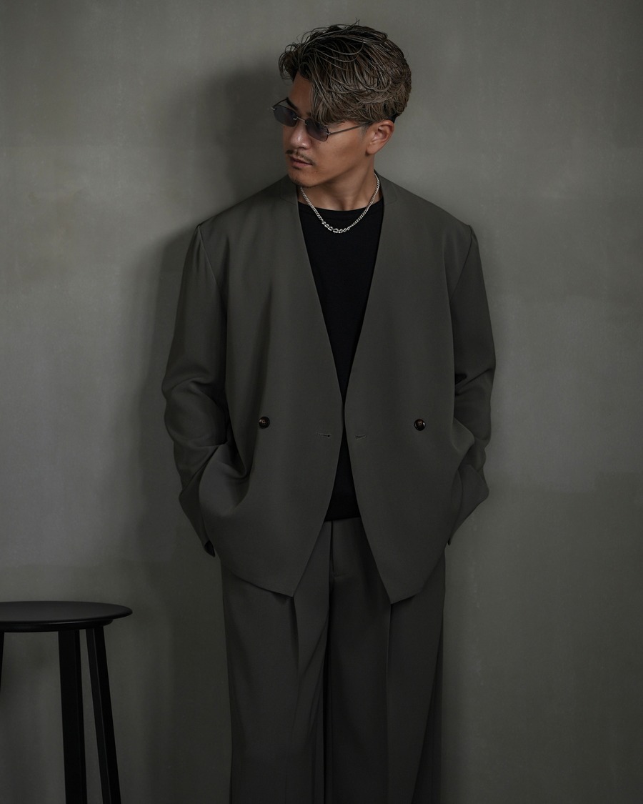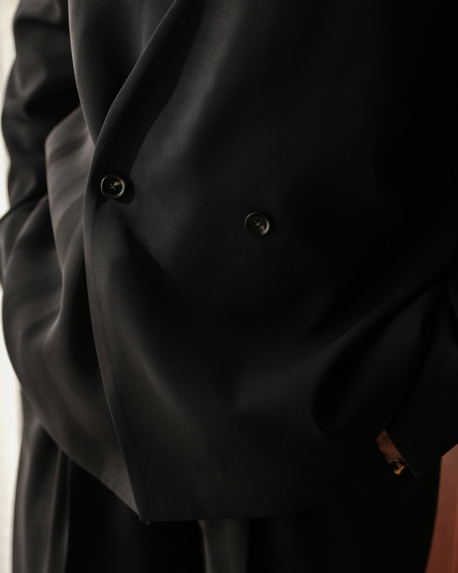 ダブルジャケットならではの端正なシルエットを際立たせるため、