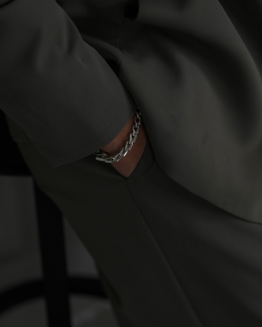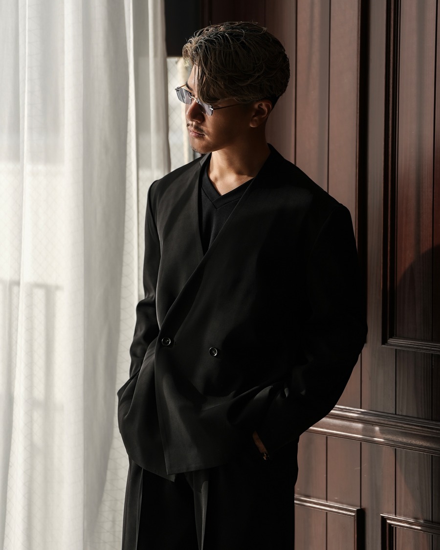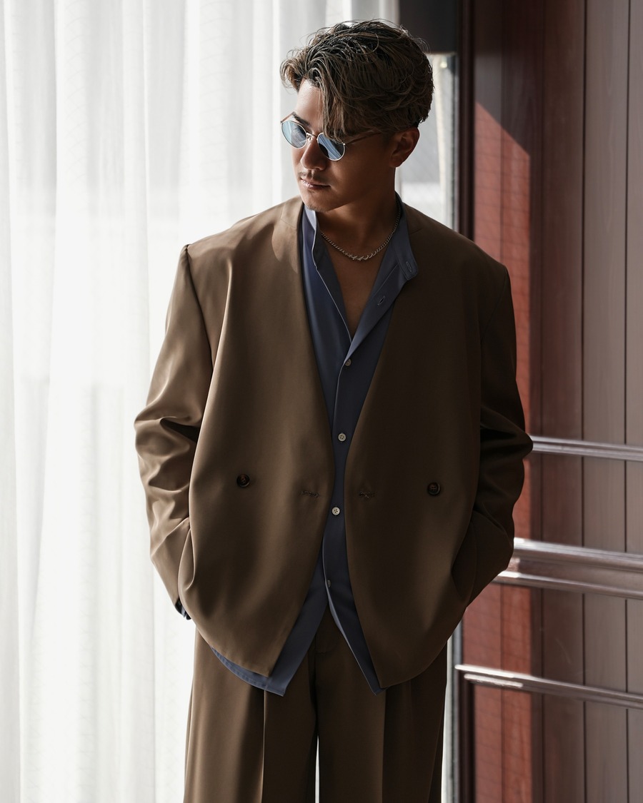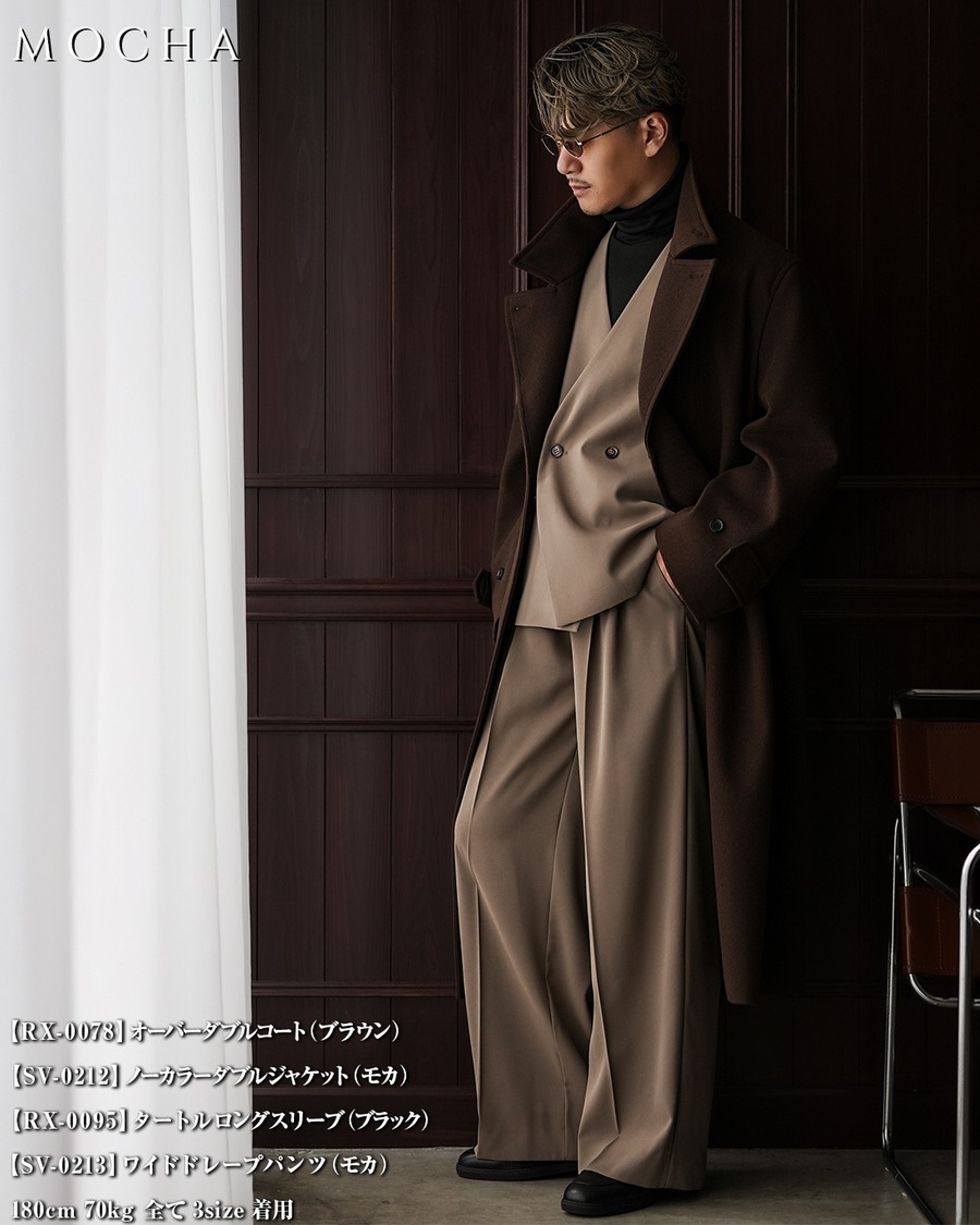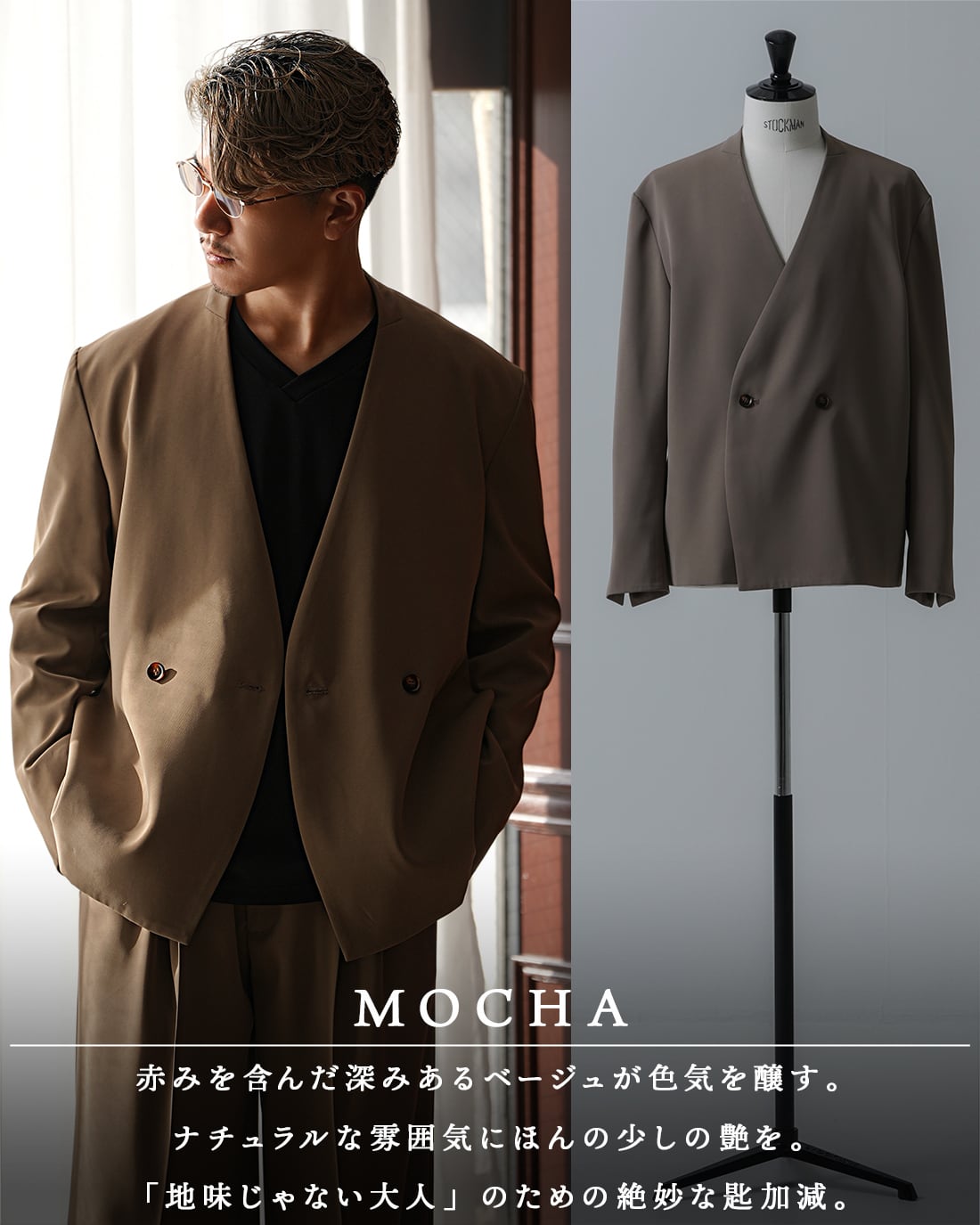 ダブルジャケットならではの端正なシルエットを際立たせるため、
