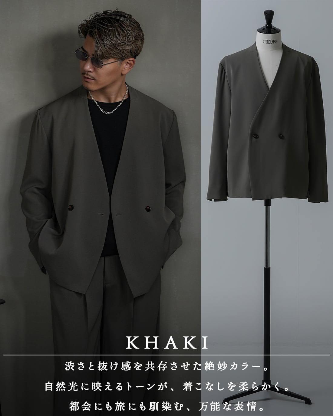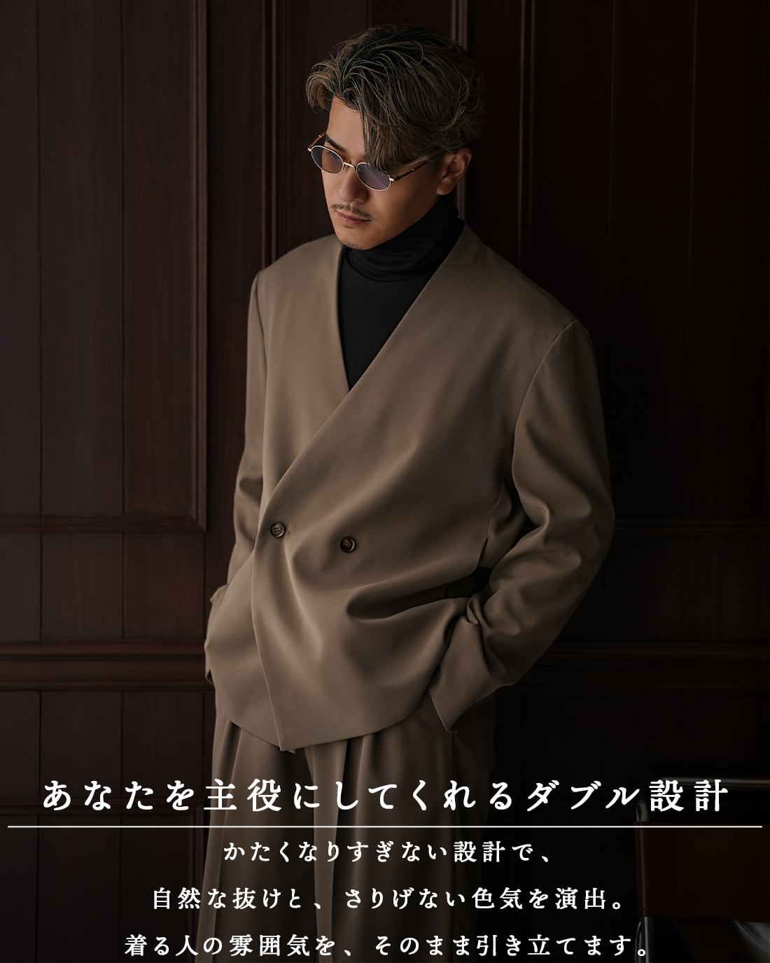オンにもオフにも対応する、現代的にアップデートされたラグジュアリーなダブルジャケット。