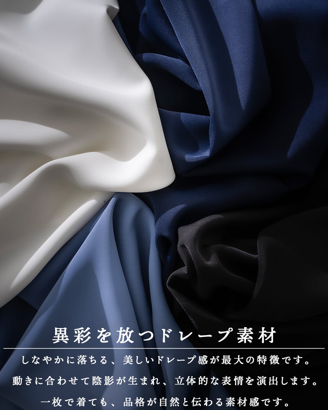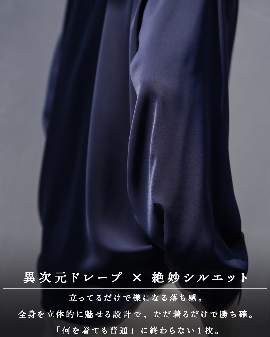 見る者の目を奪う異次元のドレープ感を実現。