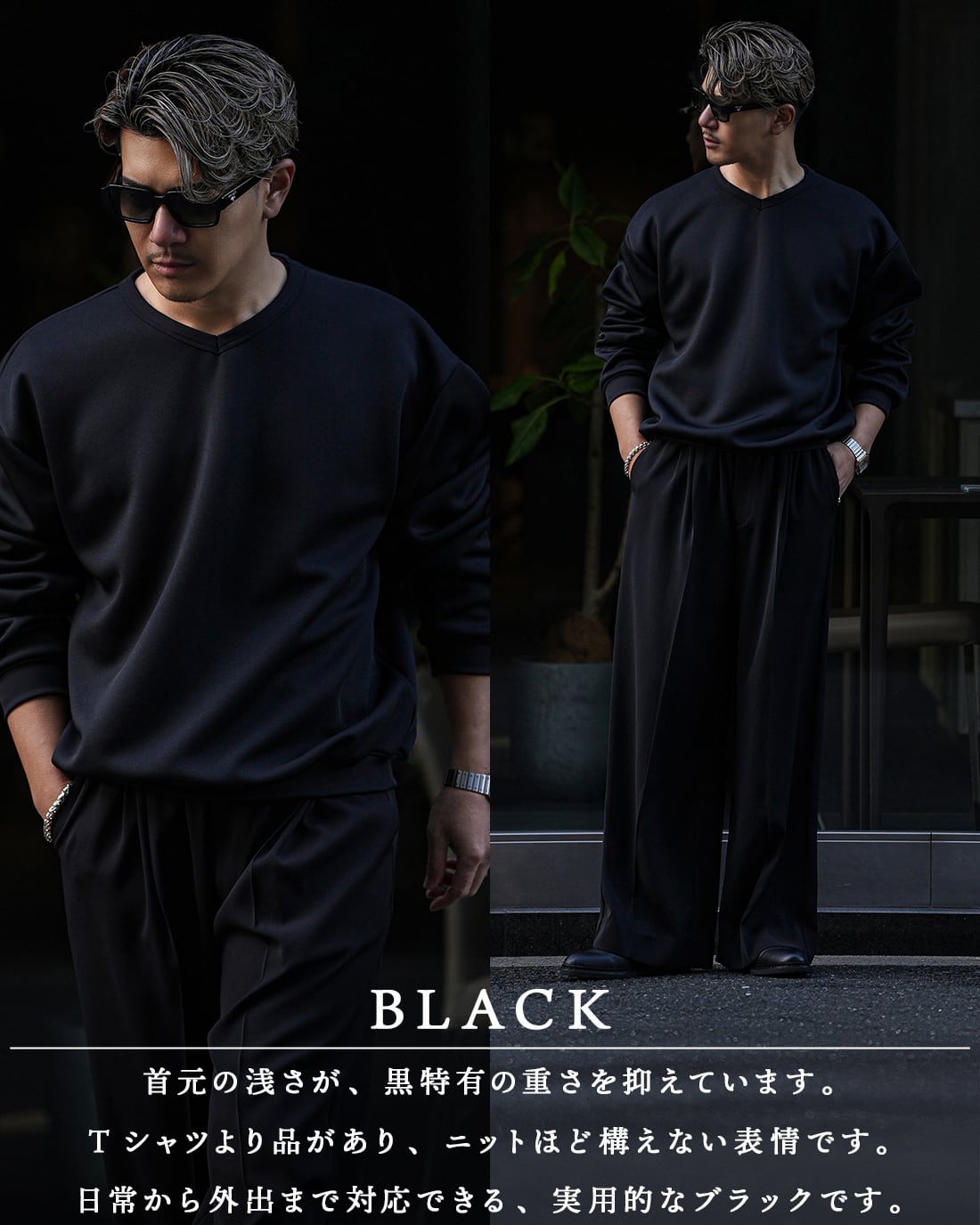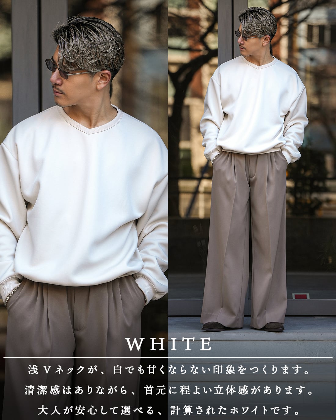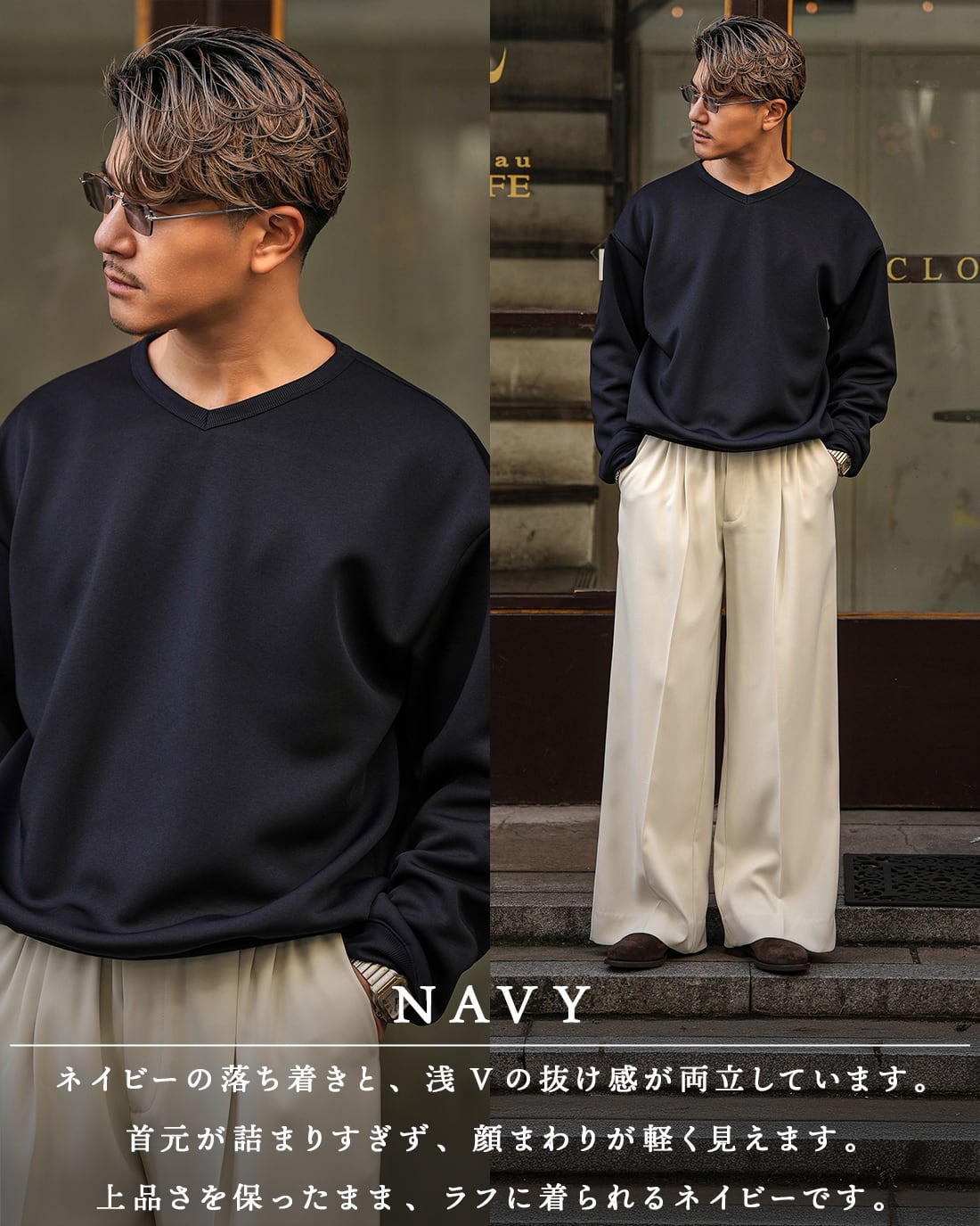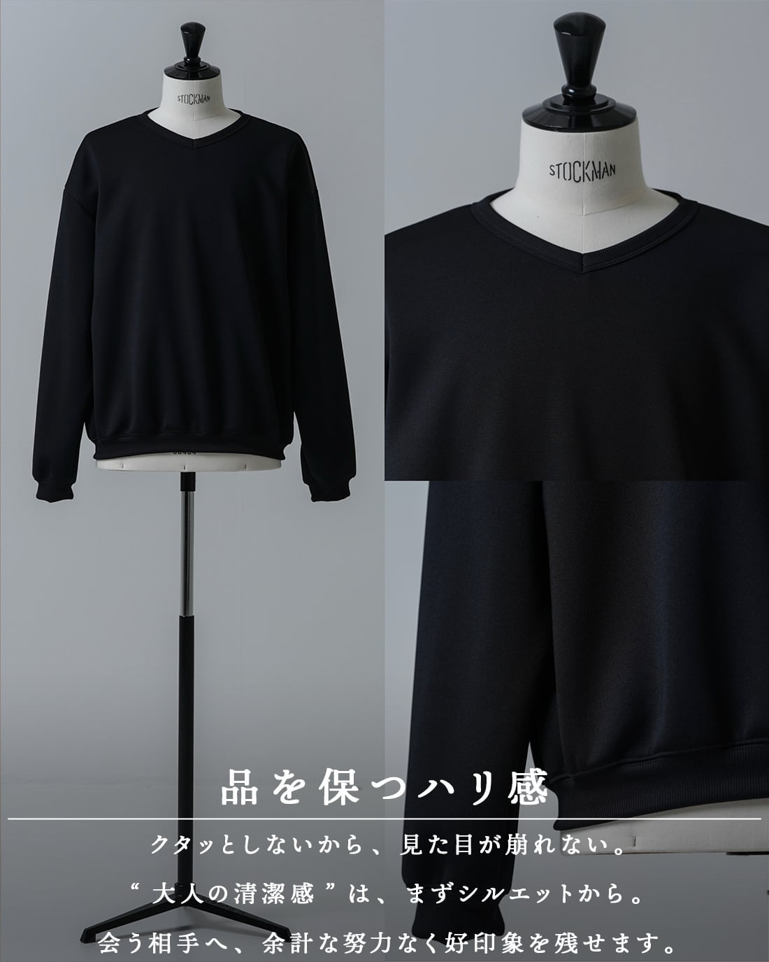 RX-0089クルーネック型で評価された“整い感”を、より大人向けのVネックデザインにリニューアル。