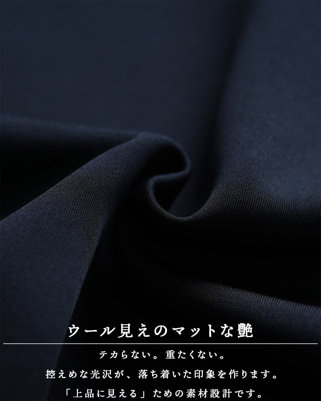 無重力級の軽さでシワになりにくく、家庭洗濯でも型崩れしにくい高機能素材となります。