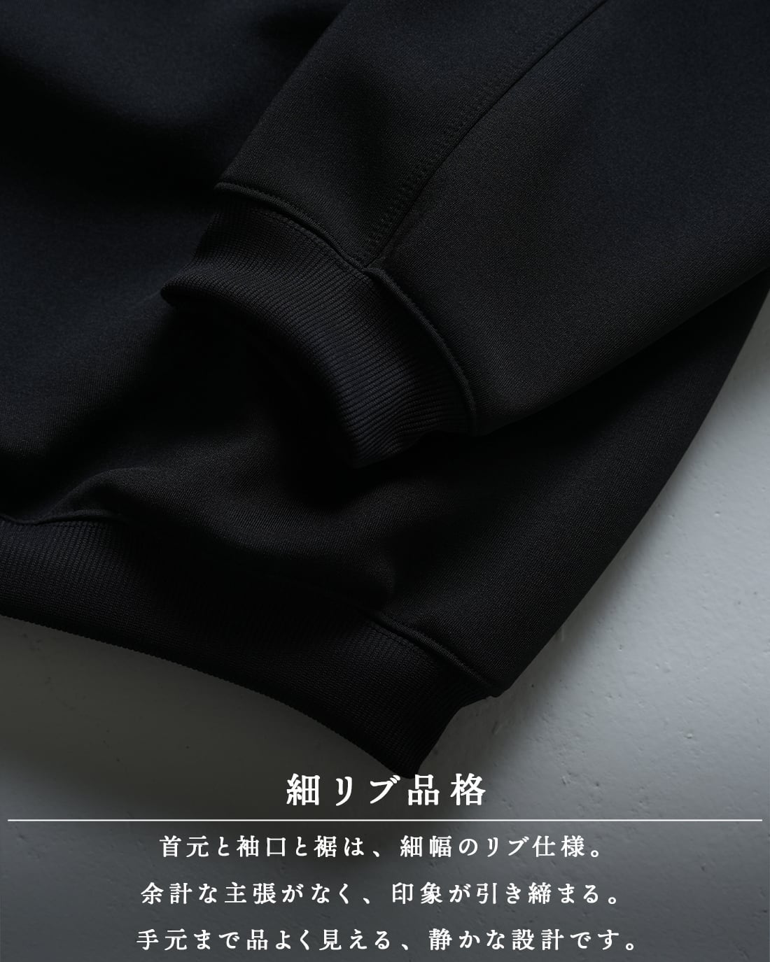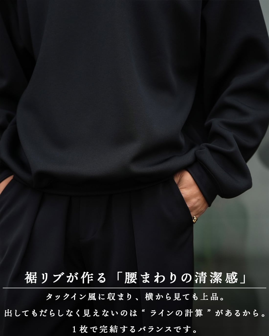裾はリブ仕様でタックイン風のコーデも自由自在。1枚でもインナーでも整う設計。