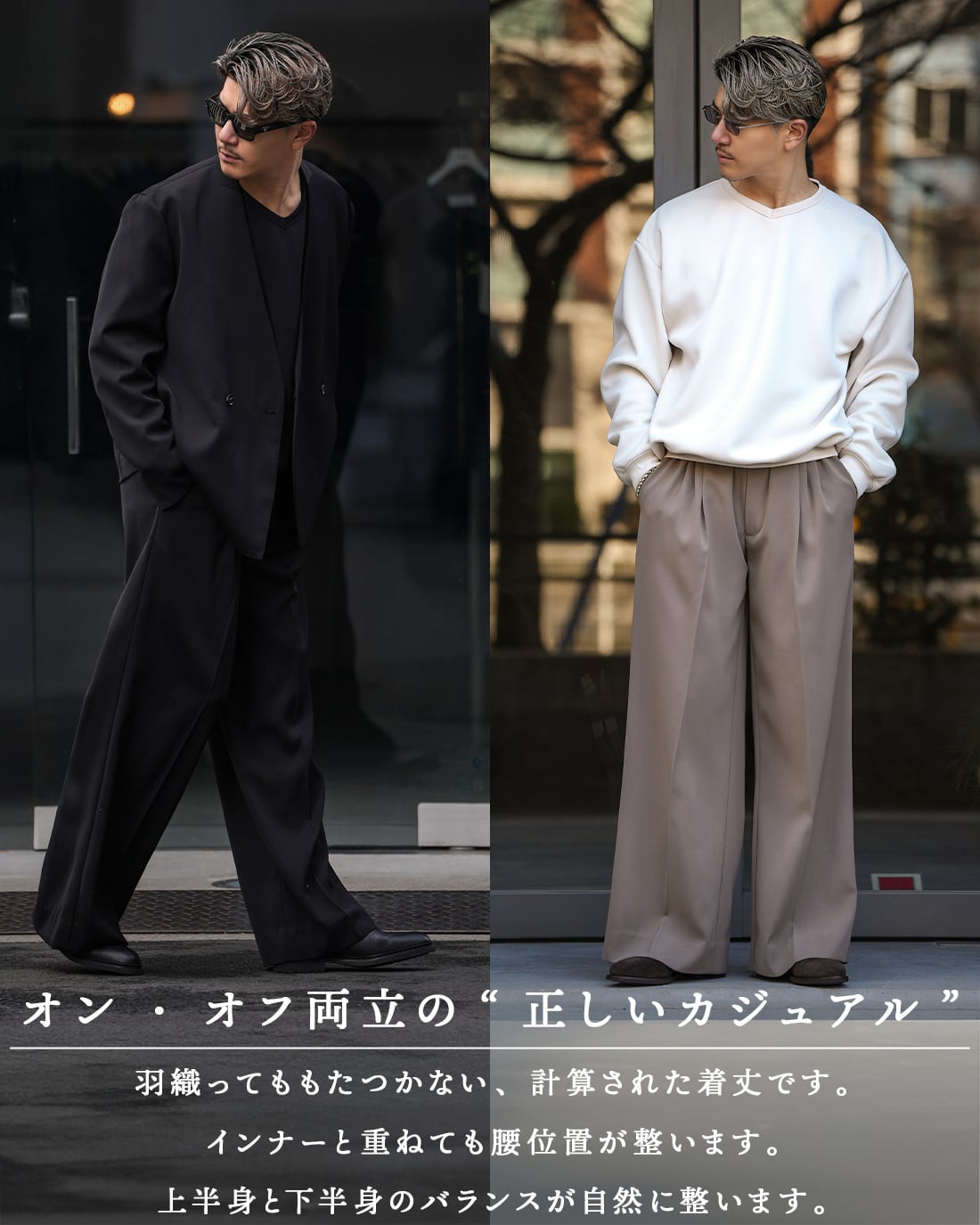 オンオフ兼用で、街着・移動・打ち合わせ・デートまで。どのシーンにも“通用する”使い勝手の良い最強の1着。