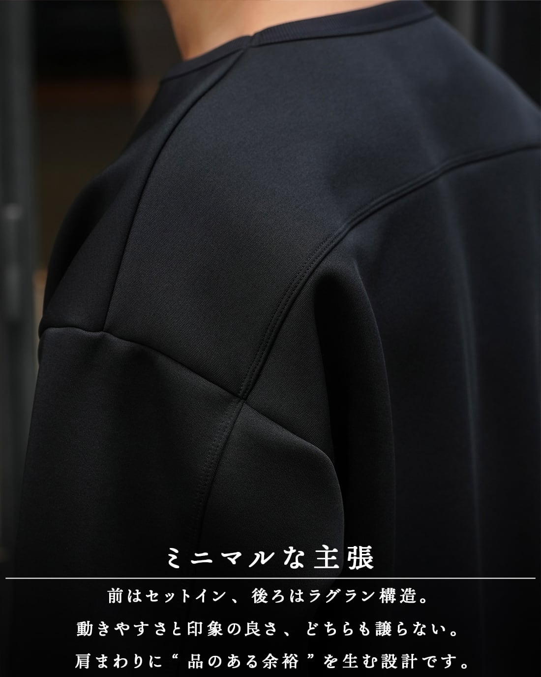 首元に自然な余白をつくることで、顔周りはシャープで全体は上品にで大人の印象に設計。
