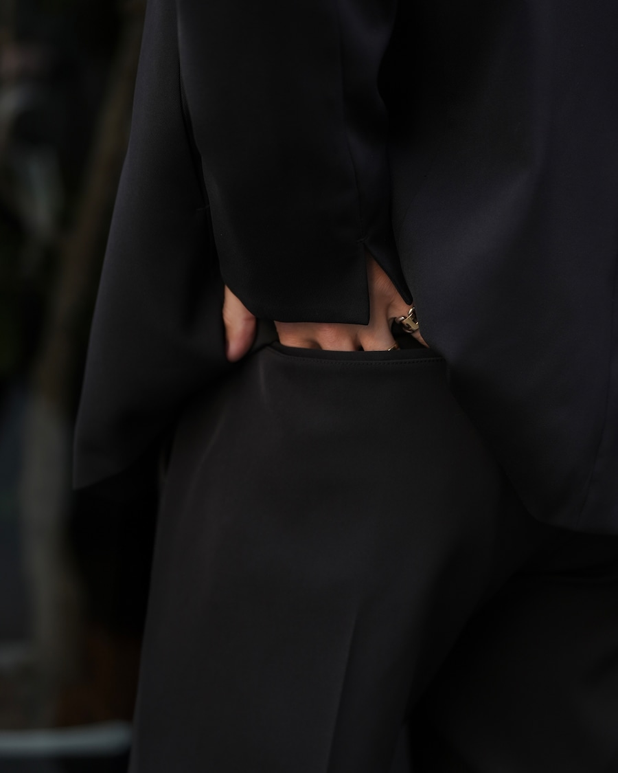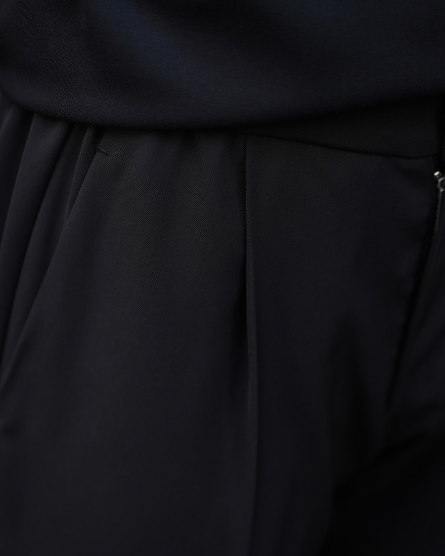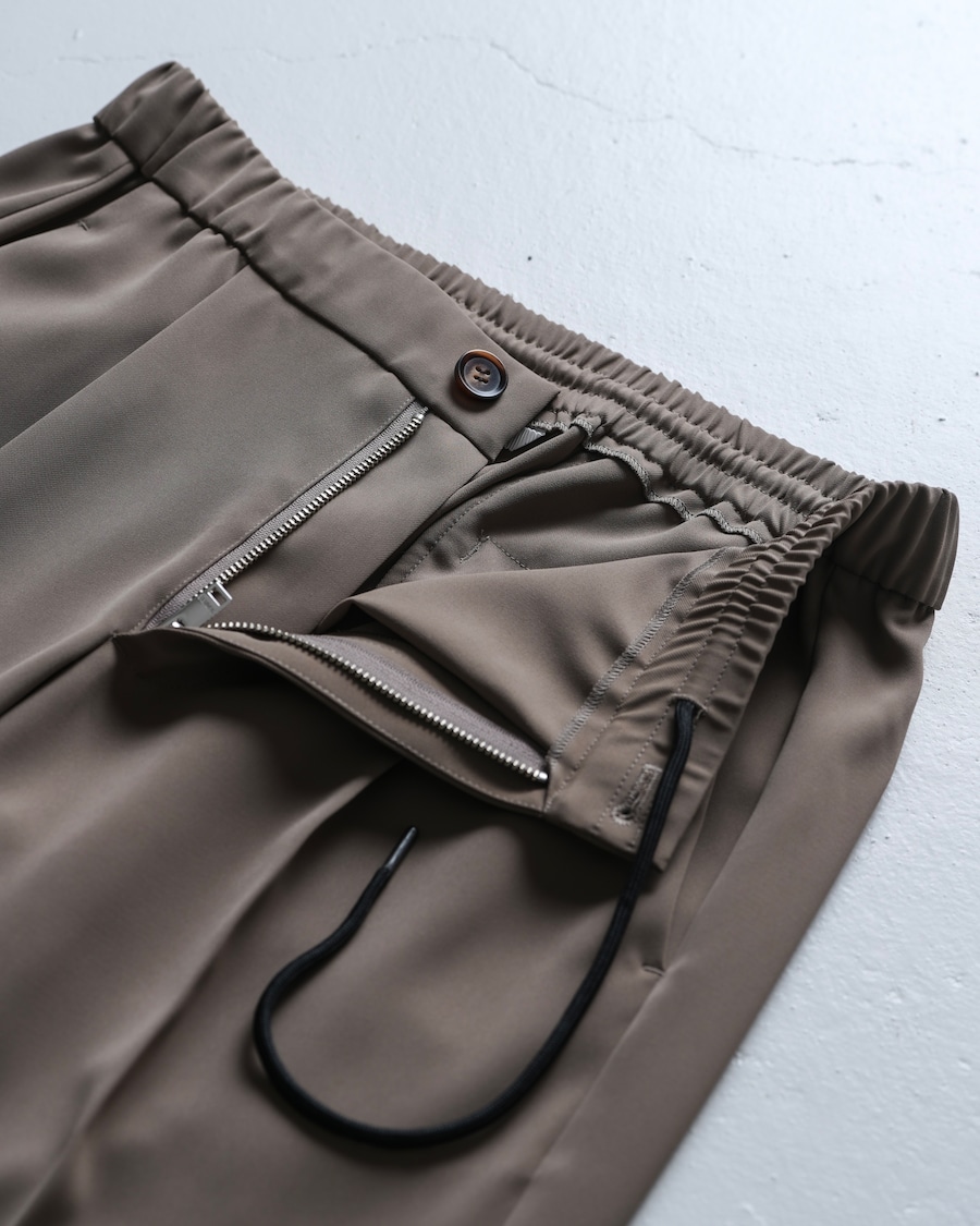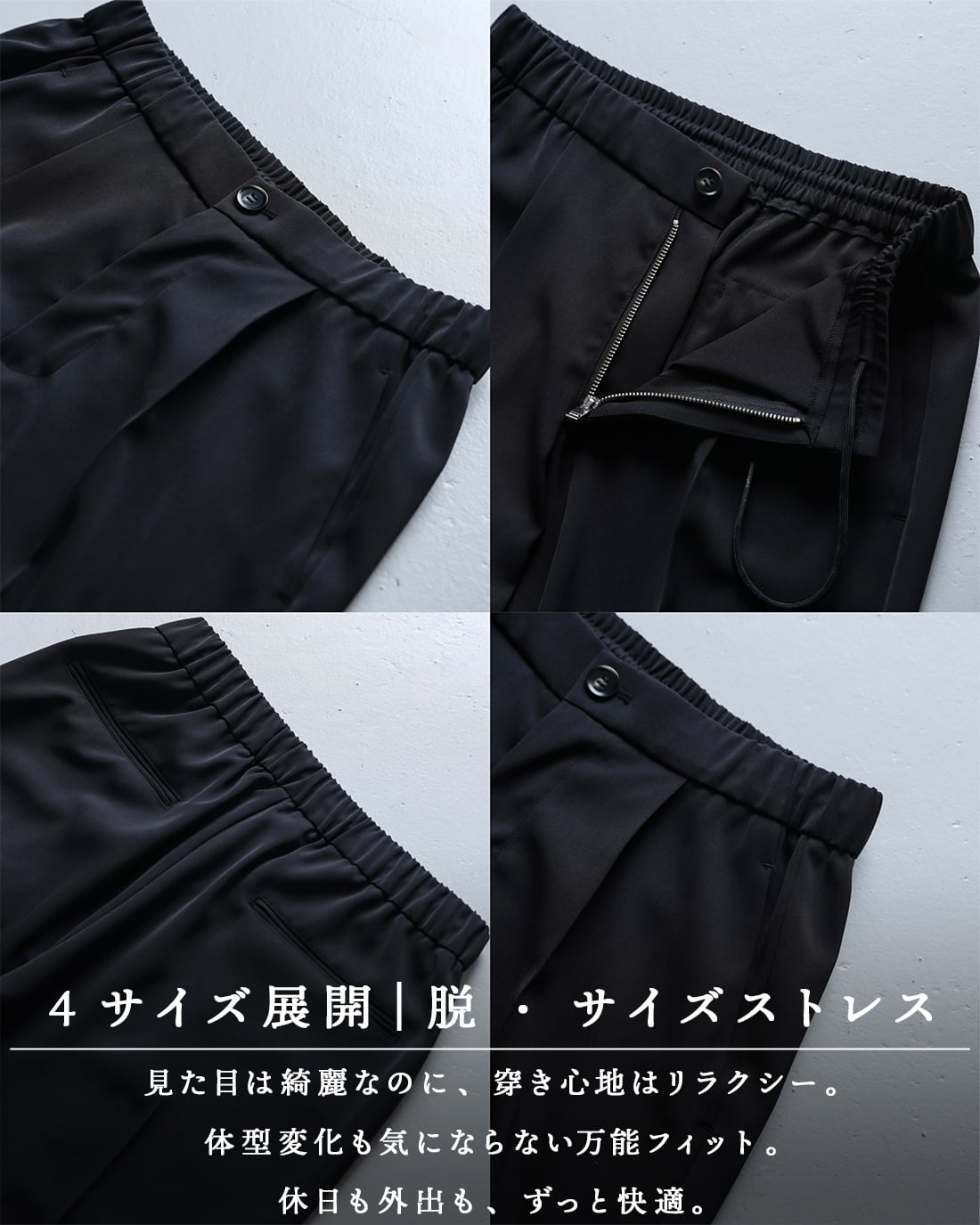 SUAVELEオリジナルの極TOROMI素材が動きに合わせてしなやかに揺れ、スリムパンツ特有の“突っ張り感”を感じさせない極上の大人シルエット。