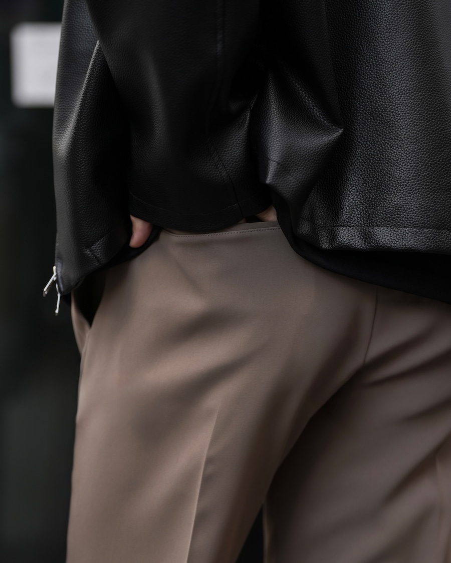 有名コレクションブランドも手がけるメンズパタンナーが、腰まわり・股上・渡り・裾幅のバランスをミリ単位で調整。
