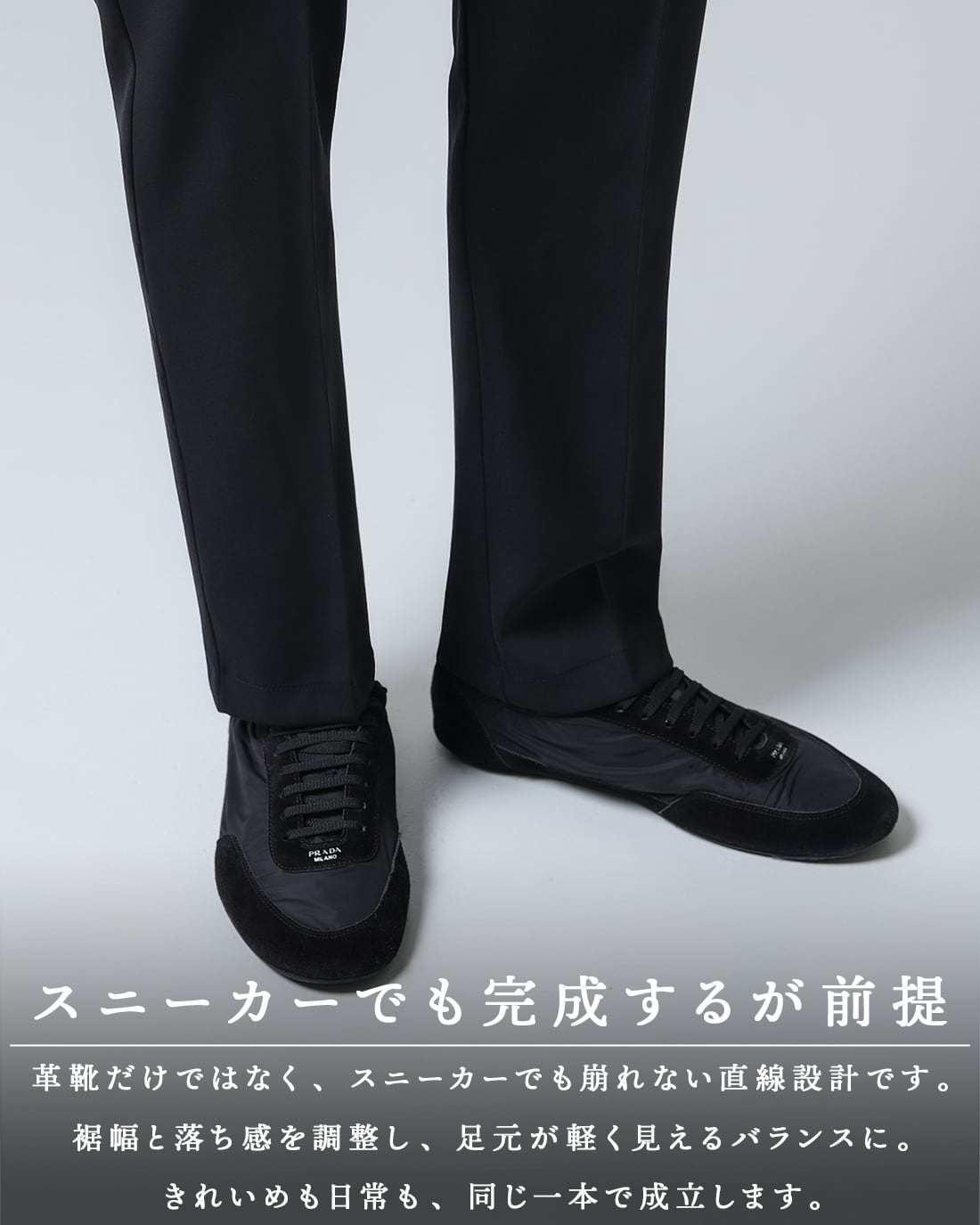 無駄なボリュームは一切排除し、細身でありながら、脚のラインを拾いすぎず、無理のない美しさを演出。