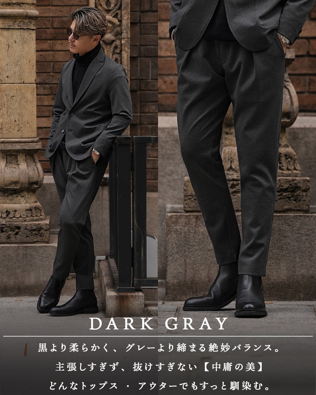 ジャケット単体でも、パンツ単体でも成立する上品さ。