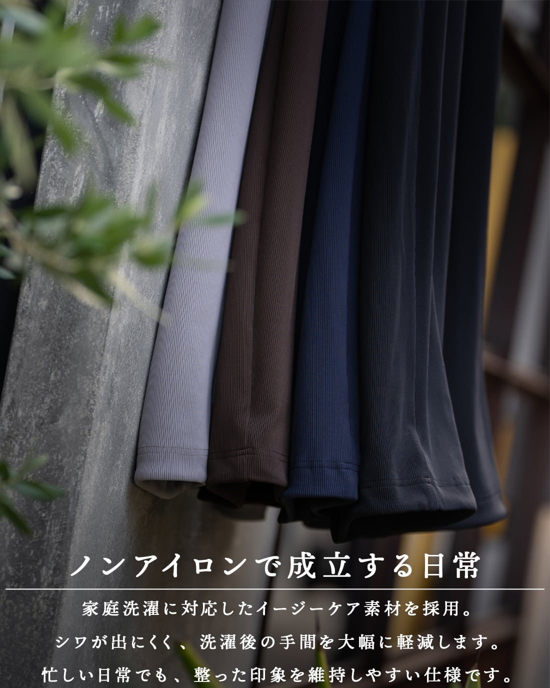 ・家庭洗濯可能、ノンアイロン対応のイージーケア