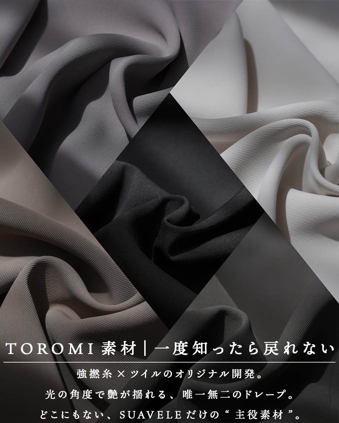 羽織るだけで自然と立体的なドレープが生まれ、身体の動きに合わせて生地が美しく流れることで、シンプルながらも存在感のある表情を演出。
