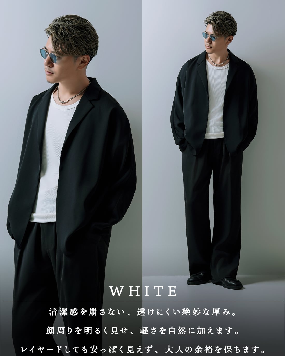 シンプルながら、シルエットで差が出る一着。