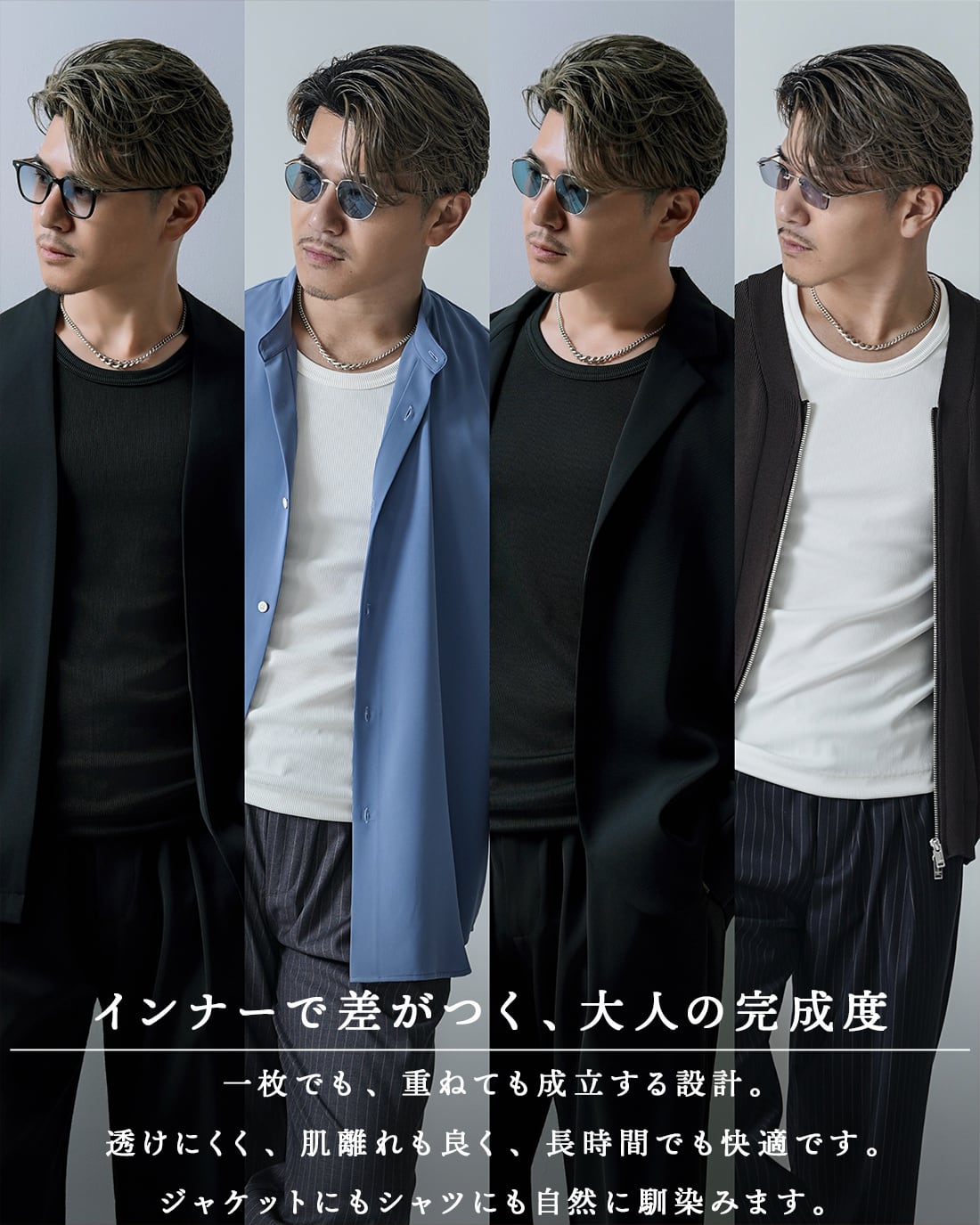 一枚でもインナーでも、洗練された印象へ。