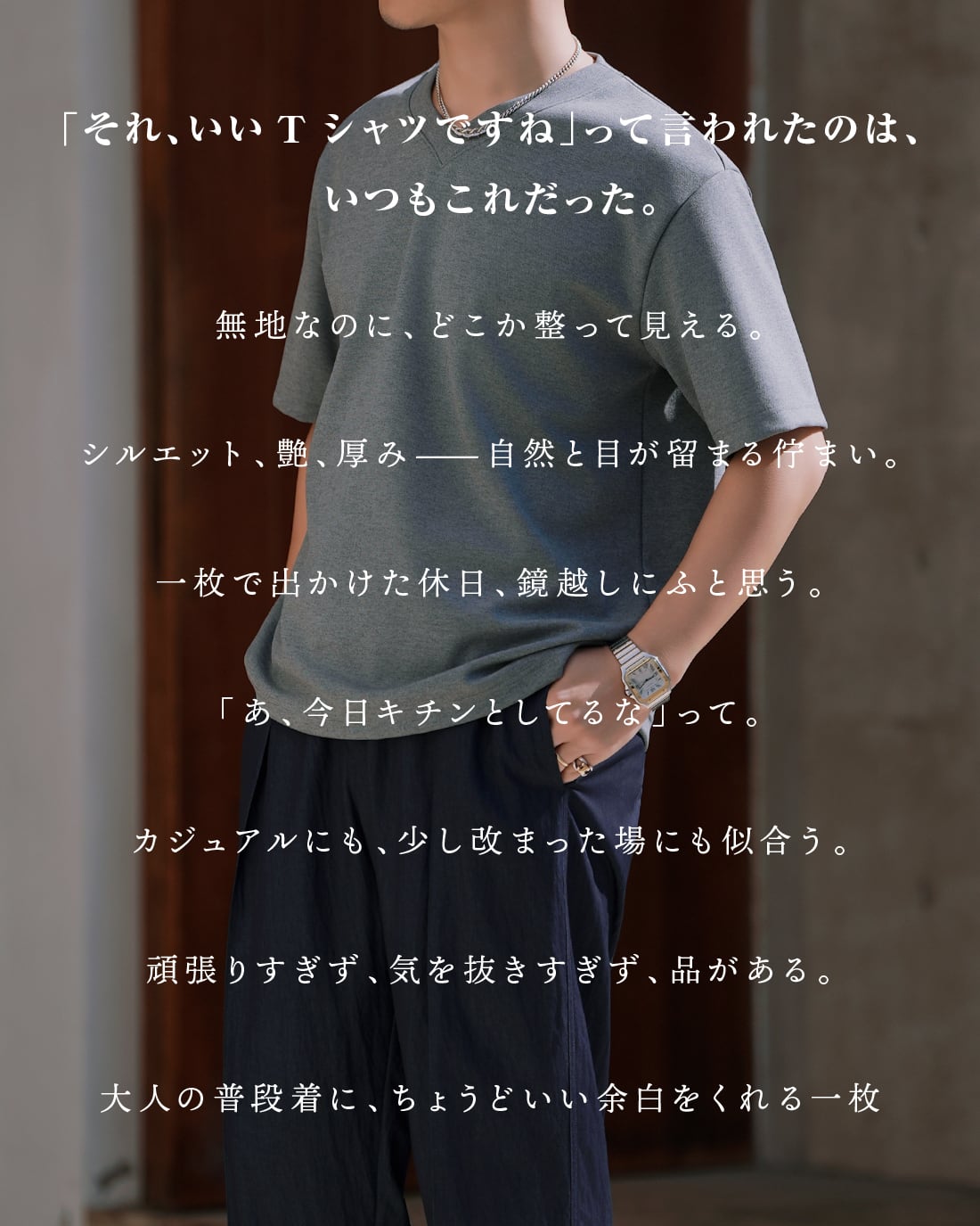 首元は深すぎず、浅すぎない絶妙なVネック設計で、大人の色気を演出。
